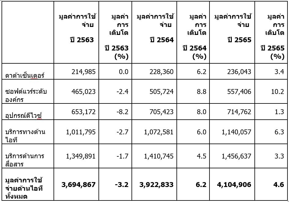 คาดว่าการใช้จ่ายด้านเทคโนโลยีสารสนเทศทุกเซกเมนต์จะกลับมาเติบโตในปี 2564 (ดูตารางที่ 1) ซอฟต์แวร์ระดับองค์กรจะเติบโตสูงสุด (8.8%) จากการพัฒนาและปรับปรุงสภาพแวดล้อมการทำงานระยะไกล โดยกลุ่มอุปกรณ์ดีไวซ์จะมีอัตราการเติบโตรองลงมา (8%) โดยมีมูลค่าถึง 705.4 พันล้านดอลลาร์สหรัฐฯ