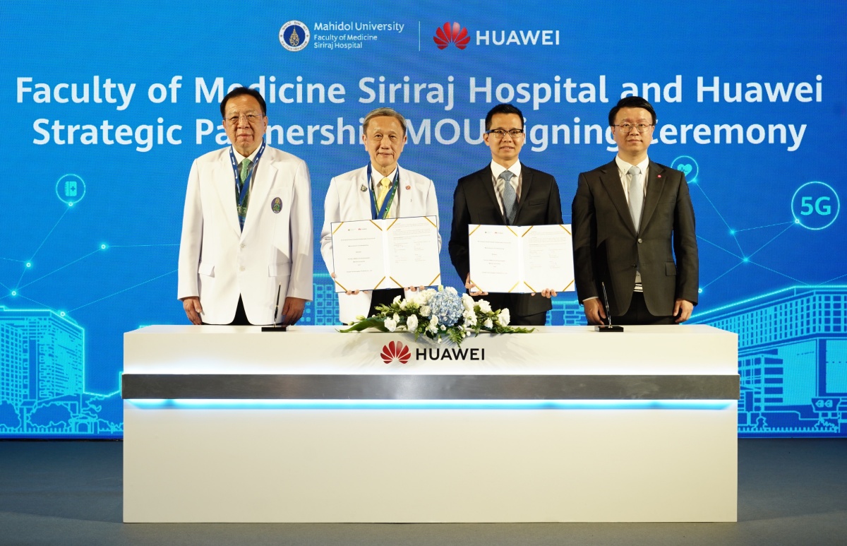 บริษัท หัวเว่ย เทคโนโลยี (ประเทศไทย) จำกัด ร่วมกับ คณะแพทยศาสตร์ศิริราชพยาบาล มหาวิทยาลัยมหิดล ลงนามบันทึกความร่วมมือว่าด้วยการพัฒนาบริการอัจฉริยะ 5G ที่ขับเคลื่อนด้วย Cloud และ AI (5G Powered Smart Hospital Enabled with Cloud and AI) สร้างแพลตฟอร์มอัจฉริยะที่ช่วยพัฒนาบริการทางการแพทย์โดยนำนวัตกรรมใหม่ ๆ มาใช้ ตลอดระยะเวลา 5 ปีข้างหน้า ทั้ง 2 ฝ่ายจะใช้ประโยชน์จากเทคโนโลยีดิจิทัลอันทันสมัย เพื่อเพิ่มประสิทธิภาพการบริการและการดำเนินงานทางการแพทย์ อันจะช่วยพัฒนาคุณภาพบริการสาธารณสุขของไทยให้ดียิ่งขึ้น