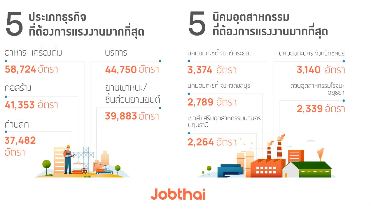 JobThai ผู้ให้บริการหางาน สมัครงาน ออนไลน์ ของประเทศไทยเปิดเผยว่า จากการรวบรวมข้อมูลความต้องการแรงงานขององค์กรใน Jobthai แพลตฟอร์ม พบว่า องค์กรมีความต้องการแรงงานในช่วงครึ่งปีแรกรวมกันอยู่ที่ 303,776 อัตรา (เป็นการนับจำนวนอัตราแบบไม่ซ้ำกัน)