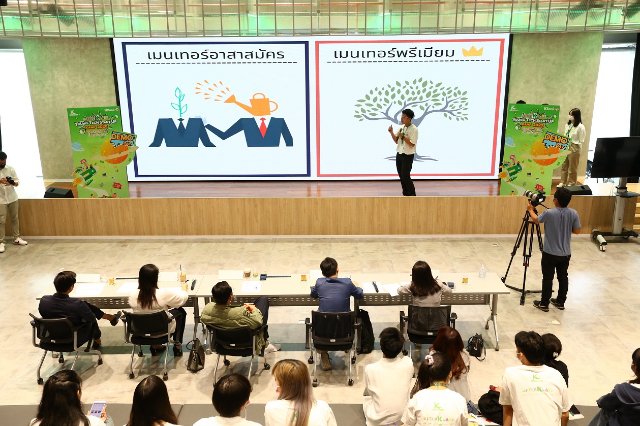 คุณรวี อ่างทอง ผู้อำนวยการฝ่ายอาวุโส ฝ่ายสื่อสารและองค์การสัมพันธ์ KBank เปิดเผยว่า จาการที่ธนาคารดำเนินกิจกรรมเพื่อกลุ่มเยาวชนอายุ 15-20 ปี ระดับมัธยมศึกษาตอนปลาย ผ่านแพลตฟอร์ม AFTERKLASS มาอย่างต่อเนื่อง พบว่ากลุ่มคนรุ่นใหม่ที่มีความสนใจเรื่องการประกอบอาชีพอิสระ การเป็นผู้ประกอบการ รวมทั้งการใช้ไอเดียและเทคโนโลยีสร้างธุรกิจให้แตกต่างที่ดิสรัปท์ธุรกิจเดิม และเติบโตได้เร็ว KBank จึงเป็นธนาคารแรกที่จัดกิจกรรม AFTERKLASS Young Tech Start Up Business Kamp 2020 เพื่อสร้างทักษะ ความรู้ แนวคิดการทำธุรกิจให้แก่เยาวชนกลุ่มมัธยมศึกษาตอนปลาย ที่มีความสนใจที่จะสร้างนวัตกรรมธุรกิจใหม่ พร้อมแข่งขันชิงเงินรางวัล มีนักเรียนมัธยมปลายสมัครเข้าร่วมกิจกรรมกว่า 100 ราย และคัดเลือกเหลือ 36 ราย เข้าร่วมการแข่งขันแบ่งเป็น แบ่งเป็น 3 รอบ