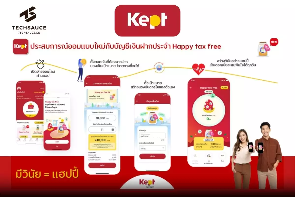Kept by krungsri นวัตกรรมบริหารเงินที่ทำให้การออมเงินเป็นเรื่องง่าย สนุกและสำเร็จได้จริง ประกาศเปิดตัวอินโนเวชันใหม่ล่าสุด กระปุก “Happy tax free” เงินฝากประจำปลอดภาษีในแอป Kept เปลี่ยนวินัยที่เคยเป็นเรื่องยากให้กลายเป็นสมการ “มีวินัย = แฮปปี้” ด้วยการออกแบบการใช้งานที่ทำให้การออมเงินเป็นเรื่องง่าย เห็นเป้าหมายปลายทางชัดเจน มีความสำเร็จเล็กๆ ระหว่างทาง ผู้เริ่มต้นออมก็สามารถใช้งานและบรรลุเป้าหมายได้ เพื่อช่วยให้คนรุ่นใหม่มีวินัยในการออมเงินสำหรับเป้าหมายในอนาคต ให้ทุกคนมีความสุขในการเก็บเงิน ควบคู่ไปกับการใช้ชีวิตตามไลฟ์สไตล์ที่ชอบ ภายใต้แนวคิดว่า “การเปลี่ยนแปลงเล็กๆ สร้างสิ่งยิ่งใหญ่เสมอ ปรับนิดชีวิตเปลี่ยน” พร้อมเปิดตัว แคมเปญสื่อสาร “มีวินัย = แฮปปี้” ภาพยนตร์โฆษณาชุดใหม่ที่ชวนคนรุ่นใหม่เริ่มก้าวแรกของการออมอย่างมีวินัยไปด้วยกัน