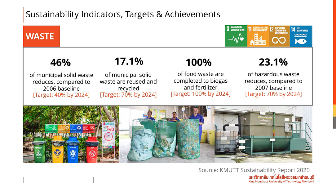 อธิการบดี มจธ. กล่าวว่า สาเหตุที่ มจธ. ให้ความสำคัญกับการลดการปลดปล่อยคาร์บอนสุทธิเป็นศูนย์ เพราะหากมหาวิทยาลัยสามารถทำให้เป็นตัวอย่างได้ หน่วยงานอื่นๆ ซึ่งอาจจะยังไม่พร้อมก็สามารถมาเรียนรู้หรือมาดูตัวอย่างที่ มจธ. โดยเฉพาะภาคเอกชนและภาคอุตสาหกรรม ซึ่ง มจธ. เรามีผู้เชี่ยวชาญ และมีเทคโนโลยีที่นำไปใช้หรือไปช่วยได้ จะเป็นการสร้างแรงบังดาลใจไปกระตุ้นให้ภาคเอกชนและภาคอุตสาหกรรมมีความเชื่อมั่นที่จะลดการปลดปล่อยคาร์บอนจากกระบวนการผลิตได้มากขึ้น