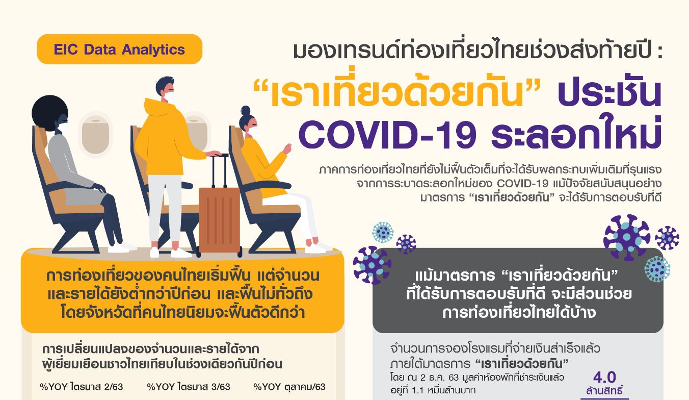EIC วิเคราะห์ว่า ภาคการท่องเที่ยวไทยที่ยังไม่ฟื้นตัวเต็มที่จะได้รับผลกระทบเพิ่มเติมที่รุนแรงจากการระบาดระลอกใหม่ของ COVID-19 แม้ปัจจัยสนับสนุนอย่างมาตรการ “เราเที่ยวด้วยกัน” จะได้รับการตอบรับที่ดีในช่วงที่ผ่านมา