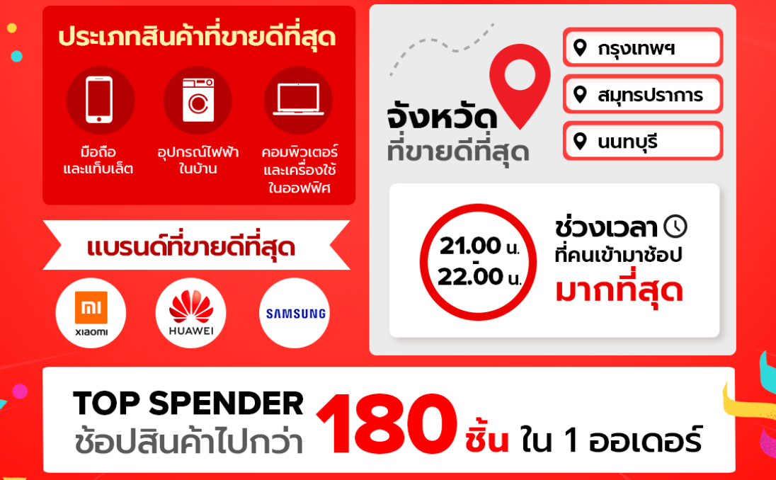 (Food & Beverage) สิ่งหนึ่งที่สังเกตได้คือ สินค้าประเภททำความสะอาด-ฆ่าเชื้อเป็นที่ต้องการสูงสุด ไม่ว่าจะเป็นสินค้าที่อยู่ในหมวดหมู่แม่และเด็ก หรือสุขภาพและความงามก็ตาม สะท้อนให้เห็นถึงความต้องการของตลาด ว่ากลุ่มลูกค้าให้ความสำคัญ และใส่ใจในเรื่องของความอนามัย และสุขภาพในระดับสูง สำหรับกลุ่มสินค้าที่มียอดมูลค่าการสั่งซื้อสูงสุด เป็นอุปกรณ์อิเล็กทรอนิกส์ อย่างกลุ่มอุปกรณ์มือถือ และแท็บเล็ต เครื่องใช้ไฟฟ้า และ กลุ่มคอมพิวเตอร์-เครื่องใช้ในออฟฟิศ ขึ้นแท่นสินค้ายอดนิยม ซึ่งคาดการณ์ได้ว่าคนวางแผนที่จะ Work from Home เพื่อตอบรับกับมาตรการรักษาระยะห่างในขณะนี้