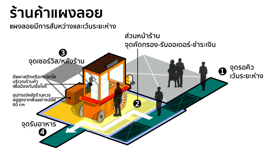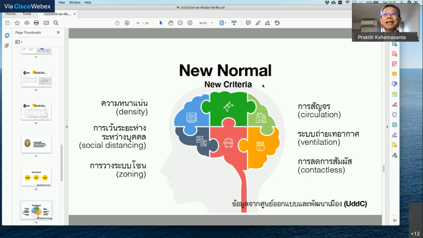 - สถาปนิกต้องจัด Criteria งานออกแบบใหม่ ด้วยเงื่อนไขของการป้องกันการแพร่กระจายเชื้อ สถาปนิกยุค New Normal จะต้องให้ความสำคัญกับเกณฑ์ออกแบบใหม่ใน 6 ด้านสำคัญ คือ ความหนาแน่น การเว้นระยะห่างทางสังคม การจัดโซนนิ่ง การสัญจร ระบบถ่ายเทอากาศ และการลดการสัมผัส (ข้อมูล: ศูนย์ออกแบบและพัฒนาเมือง (UddC-CEUS) จุฬาลงกรณ์มหาวิทยาลัย) สู่ การทำงานร่วมกับวิศวกรในการปรับปรุงโครงการงานออกแบบสถานที่ต่าง ๆ ในอนาคต เช่น ร้านค้าแผงลอย ตลาดอาหาร ศูนย์อาหาร ฯลฯ ที่ผู้คนสามารถเข้าใช้บริการได้อย่างสะดวกสบาย และไม่เสี่ยงต่อการติดเชื้อ