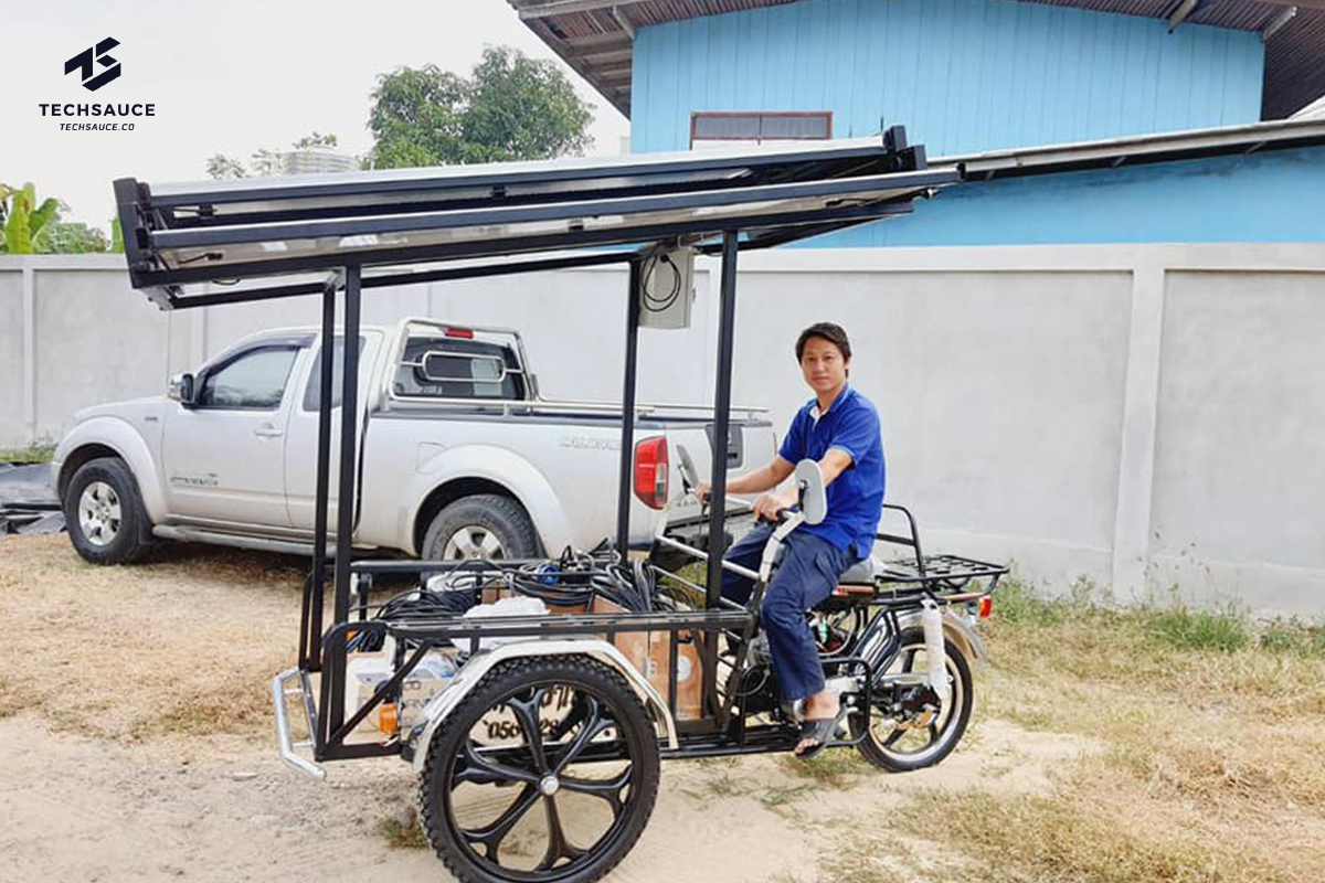 ซาเล้งโซลาร์เซลล์ โดยนายวิชัย เข็มทอง จ.ราชบุรี - โซลาร์เซลล์แบบเคลื่อนที่สำหรับใช้ในพื้นที่ทางการเกษตร ไม่ต้องลงทุนติดตั้งโซลาร์เซลล์แบบประจำที่หลายชุด ถือเป็นการช่วยลดต้นทุนให้กับเกษตรกร และยังสามารถแบ่งใช้งานร่วมกันในชุมชนได้