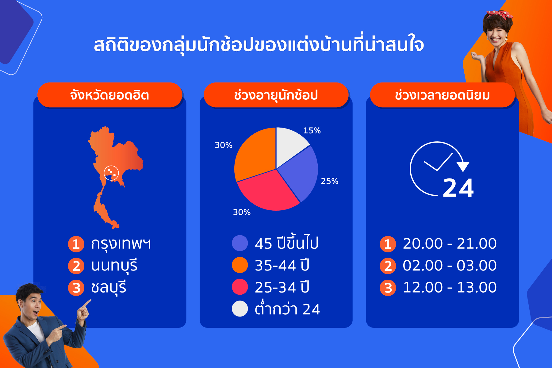 สถิติใหม่มาจากความต้องการสิ่งของจำเป็นบนช่องทางออนไลน์เพิ่มขึ้นอย่างต่อเนื่อง ด้านพฤติกรรมนักช้อปในกลุ่มของตกแต่งบ้าน และวัสดุก่อสร้าง ในช่วงนี้มองเห็นได้ว่าคนส่วนใหญ่เริ่มหันมาสนใจการตกแต่งบ้านมากขึ้น โดยสามารถตอบโจทย์หลายวัตถุประสงค์ ไม่ใช่แค่เพื่ออยู่อาศัย แต่ต้องตอบครบเรื่องไลฟ์สไตล์ไปด้วย เช่น มุมอ่านหนังสือ มุมทำอาหาร หรือสินค้าเพื่อการทำครัว ปลูกต้นไม้ รวมถึง อำนวยความสะดวกด้านสันทนาการ อย่างกิจกรรมดูหนัง ฟังเพลง เล่นเกมส์ อีกด้วย