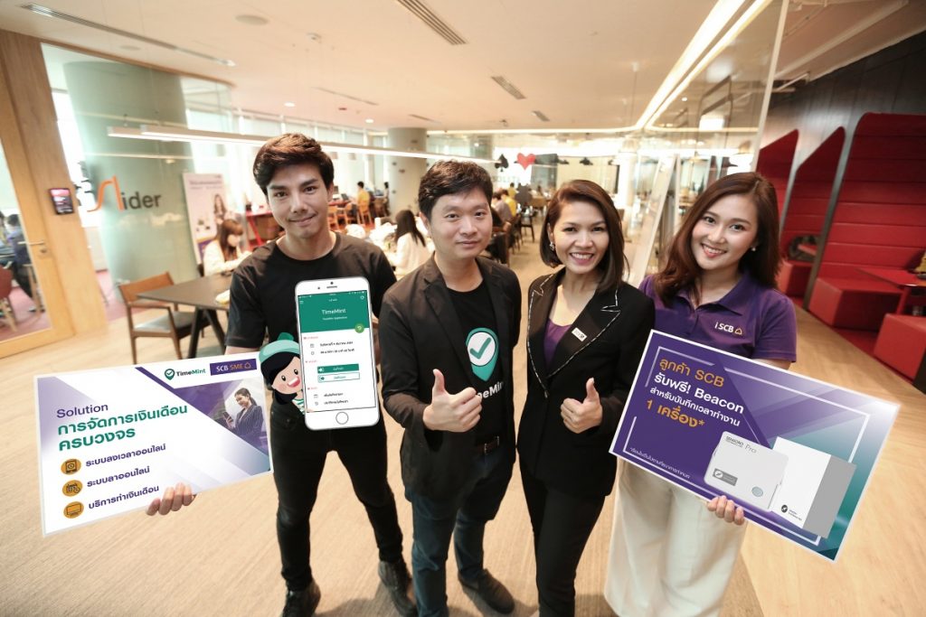 ธนาคารไทยพาณิชย์ เดินหน้าขยายพันธมิตรทางด้านดิจิทัลเพื่อเสริมศักยภาพผู้ประกอบการเอสเอ็มอีอย่างต่อเนื่อง จับมือ บริษัท อินเทลสไปร์ จำกัด สตาร์ทอัพไทยผู้พัฒนาแอพพลิเคชั่น Timemint (ทามมิ้น) แพลตฟอร์มดิจิทัลเพื่อการบริหารงานทรัพยากรบุคคล รองรับการจ่ายเงินเดือนพนักงานผ่าน SCB Payroll ที่จะช่วยให้ผู้ประกอบการสามารถจัดการธุรกิจและบริหารค่าใช้จ่ายด้านพนักงานได้อย่างมีประสิทธิภาพมากยิ่งขึ้น ด้วยฟังก์ชั่นการใช้งานที่ครอบคลุม บันทึกเวลาเข้า-ออกงานของพนักงานด้วยรูปแบบที่หลากหลายอย่างแม่นยำ สามารถเลือกใช้ตามลักษณะเฉพาะของธุรกิจแต่ละประเภท เช่น บันทึกเวลาทำงานด้วยแอปพลิเคชัน การแสกน QR CODE การสแกนลายนิ้วมือ การสแกนใบหน้าด้วยกล้องจับภาพใบหน้า 3 มิติ และการบันทึกเวลาทำงานด้วยอุปกรณ์ BEACON Timemint ยังให้บริการจัดทำและคำนวณเงินเดือนให้กับเจ้าของธุรกิจ พร้อมนำส่งเอกสารที่ต้องนำส่งภาครัฐตามกฎหมายแรงงานและภาษีที่เกี่ยวข้อง
