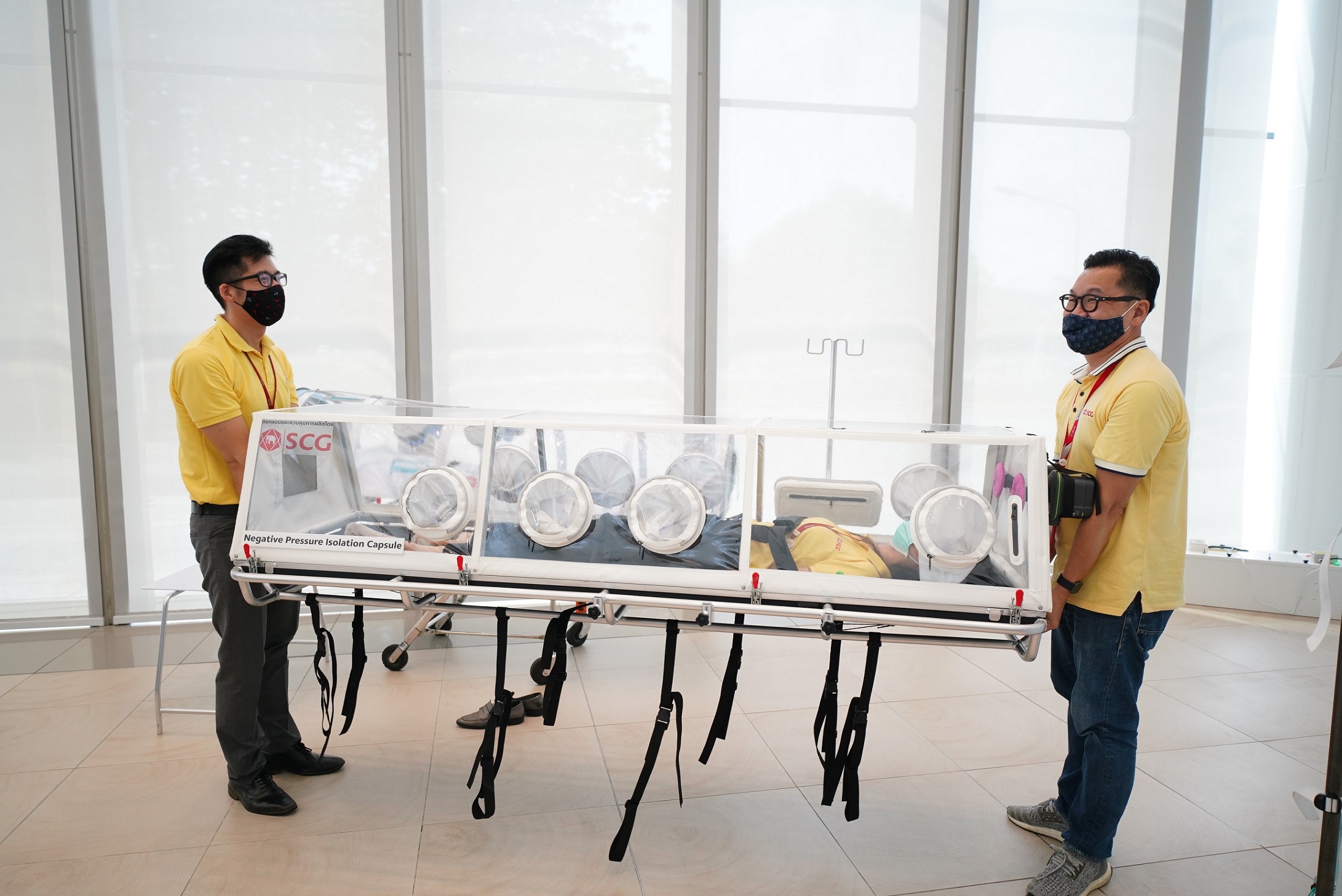 ศุภธิดา รัตนสวัสดิ์ Medical and Wellbeing Business Manager ธุรกิจเคมิคอลส์ เอสซีจี ทีมพัฒนาแคปซูลเคลื่อนย้ายผู้ป่วยความดันลบเคลื่อนที่ เล่าถึงความตั้งใจที่จะช่วยลดการแพร่กระจายเชื้อโควิด 19 ระหว่างการเคลื่อนย้ายผู้ป่วยโควิด 19 เพื่อเข้ารับการรักษาว่าเป็น “โจทย์หลัก” ในการคิดค้นนวัตกรรม ซึ่งต้องทำให้ได้ตามมาตรฐานของการแพทย์ ทั้ง 1.) แคปซูลเคลื่อนย้ายผู้ป่วยความดันลบภายในโรงพยาบาลและรถพยาบาลที่นำผู้ป่วยจากบ้านไปยังโรงพยาบาล รวมถึง 2.) แคปซูลเคลื่อนย้ายผู้ป่วยความดันลบขนาดเล็ก สำหรับเข้าเครื่อง CT Scan เพื่อตรวจภาวะปอดติดเชื้อ จนปัจจุบันได้พัฒนาไปสู่ 3.) แคปซูลความดันลบสำหรับเคลื่อนย้ายผู้ป่วยทางอากาศ ซึ่งต้องพัฒนาและปรับมาตรฐานของแคปซูลให้เข้ากับมาตรฐานการบินด้วย โดยทั้งหมดเกิดขึ้นจากการทำความเข้าใจ ความต้องการของลูกค้า ต่อยอดและพัฒนาอย่างต่อเนื่อง