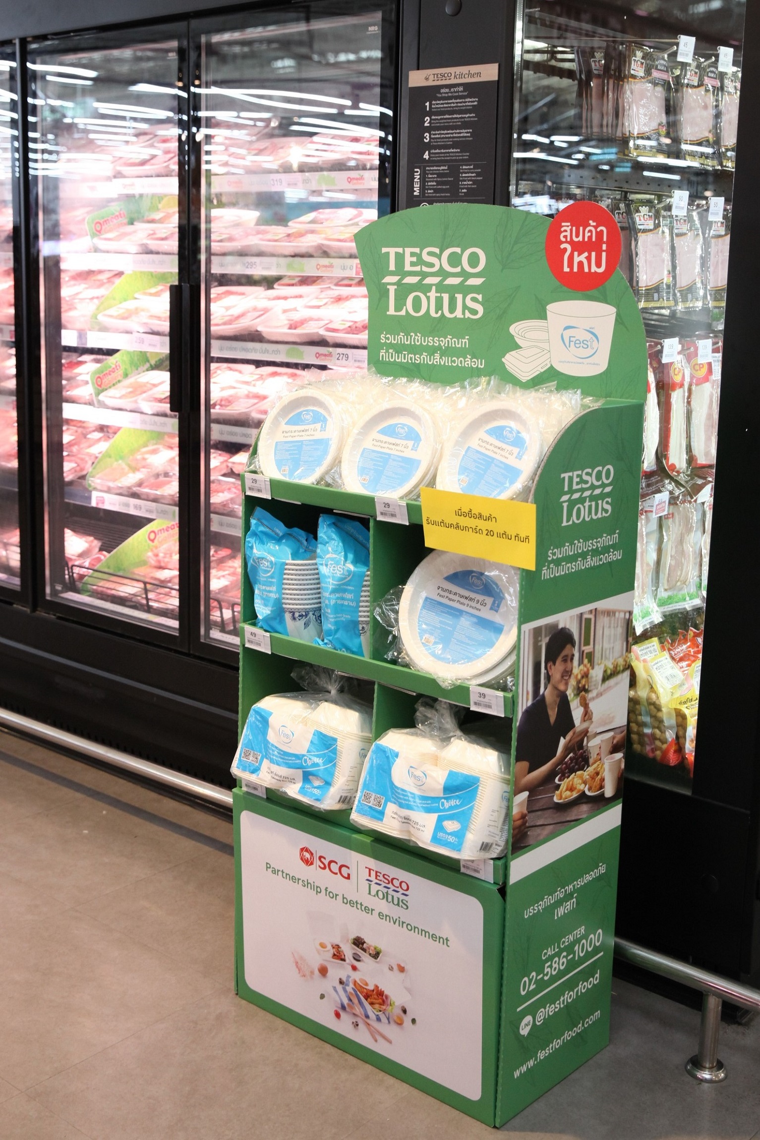 สำหรับความร่วมมือระหว่างเอสซีจี และเทสโก้ โลตัส ครั้งนี้ มีตั้งแต่การจำหน่ายบรรจุภัณฑ์อาหารปลอดภัยที่เป็นมิตรต่อสิ่งแวดล้อมแบรนด์เฟสท์ (Fest) จากเอสซีจี ให้ลูกค้าสามารถเข้าถึงบรรจุภัณฑ์ที่เป็นทางเลือกได้อย่างสะดวกสบาย เพื่อเปลี่ยนพฤติกรรมการใช้งานจากกล่องโฟมหรือบรรจุภัณฑ์ที่ไม่สามารถรีไซเคิลได้มากขึ้น นอกจากนี้ เอสซีจียังให้บริการนำบรรจุภัณฑ์กระดาษใช้แล้วที่เก็บรวบรวมจากสาขาเข้าสู่ศูนย์กระจายสินค้าเทสโก้ โลตัส ไปรีไซเคิลและผลิตเป็นถุงกระดาษสำหรับใช้แทนถุงพลาสติกอีกด้วย จึงนับเป็นความร่วมมือที่เอสซีจี และเทสโก้ โลตัส ประสานพลังในการส่งเสริมการใช้บรรจุภัณฑ์ที่ตอบสนองทั้งฟังก์ชั่นการใช้งานของผู้บริโภค และตอบโจทย์ด้านสิ่งแวดล้อมไปพร้อมๆ กัน ตามแนวทางเศรษฐกิจหมุนเวียนของเอสซีจี หรือ SCG Circular Way