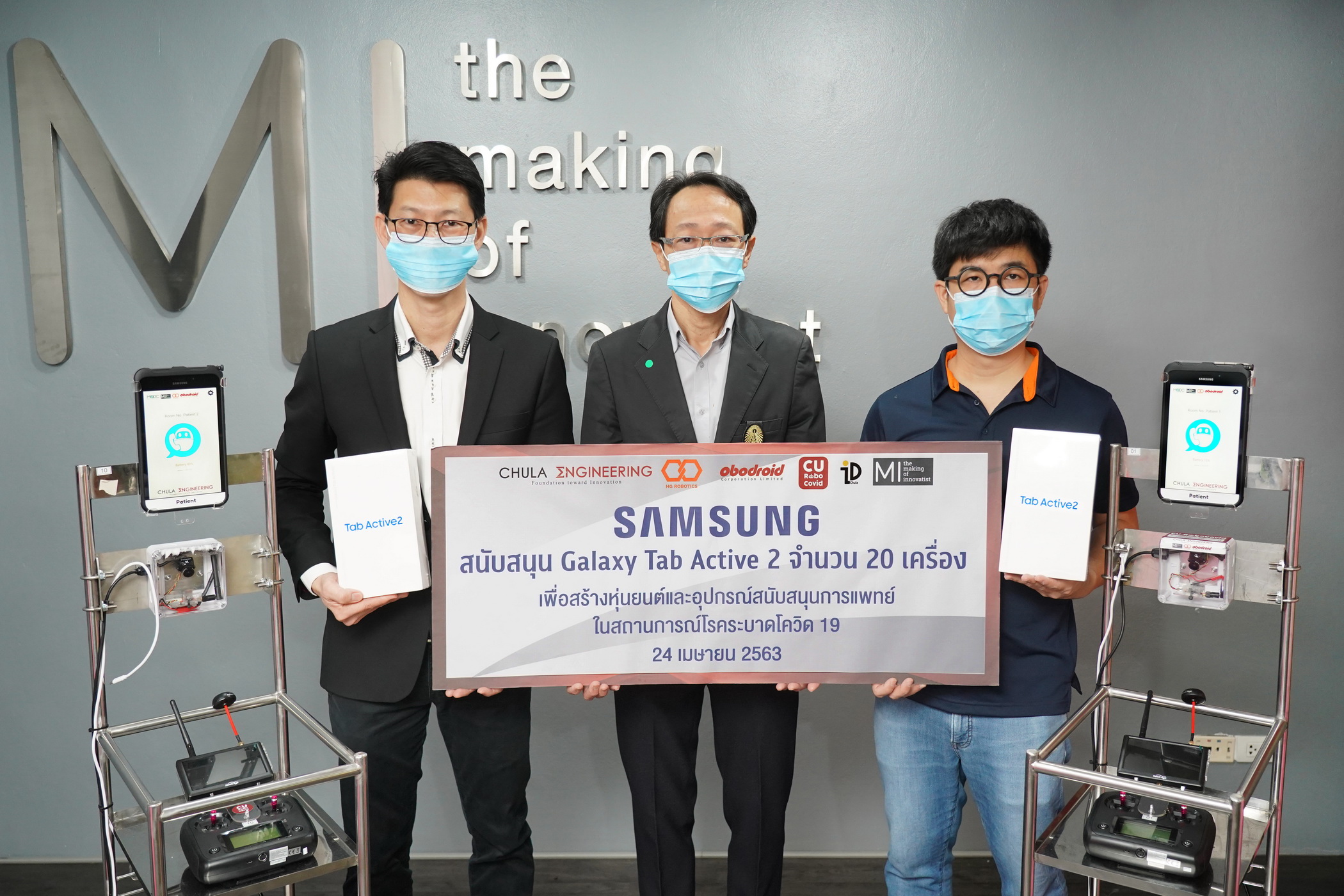 บริษัท ไทยซัมซุง อิเลคโทรนิคส์ จำกัด ร่วมสนับสนุนอุปกรณ์แท็บเล็ตรุ่น กาแลคซี่ แท็บ แอคทีฟ 2 (Galaxy Tab Active 2) ให้แก่โครงการพัฒนาหุ่นยนต์และอุปกรณ์สนับสนุนการแพทย์ “CU-RoboCOVID” ซึ่งดำเนินงานโดย คณะวิศวกรรมศาสตร์ จุฬาลงกรณ์มหาวิทยาลัย เพื่อช่วยลดความเสี่ยงในการติดเชื้อ แบ่งเบาภาระงาน และช่วยเพิ่มประสิทธิภาพการทำงานให้บุคลากรทางการแพทย์ในช่วงสถานการณ์การระบาดของโรคติดเชื้อไวรัสโคโรนา 2019
