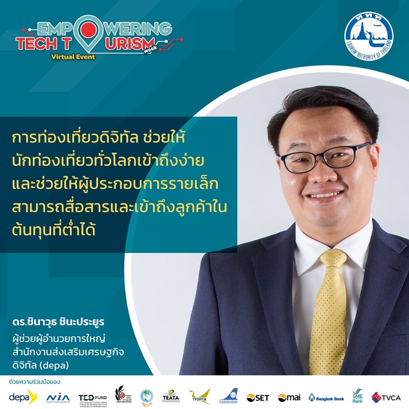 ขณะที่ ดร.ชินาวุธ ชินะประยูร ผู้ช่วยผู้อำนวยการใหญ่ สำนักงานส่งเสริมเศรษฐกิจดิจิทัล (depa) เผยว่า “COVID-19 มาพร้อมกับโอกาสถ้าหากเรารู้จักปรับตัว การปรับเปลี่ยนไปสู่ดิจิทัลนั้นรวดเร็วขึ้นกว่าช่วงเวลาปกติถึง 5 ปี โดยเฉพาะการยกระดับอุตสาหกรรมท่องเที่ยวไปสู่ดิจิทัลนั้นสำคัญมาก โลกกำลังเดินทางเข้าสู่เศรษฐกิจแบบดิจิทัลซึ่งเป็นสิ่งที่หลีกเลี่ยงไม่ได้ การสร้างการท่องเที่ยวรูปแบบใหม่จึงต้องตามมา ซึ่งโอกาสก็คือ ธุรกิจจะมีลูกค้ารออยู่ทั่วโลก มีต้นทุนที่ต่ำลงในการเข้าถึงลูกค้า ขณะที่ไทยเรามีวัฒนธรรม และธรรมชาติ เป็นสินทรัพย์สำคัญที่ดึงดูดให้คนอยากมาเป็นจำนวนมาก”