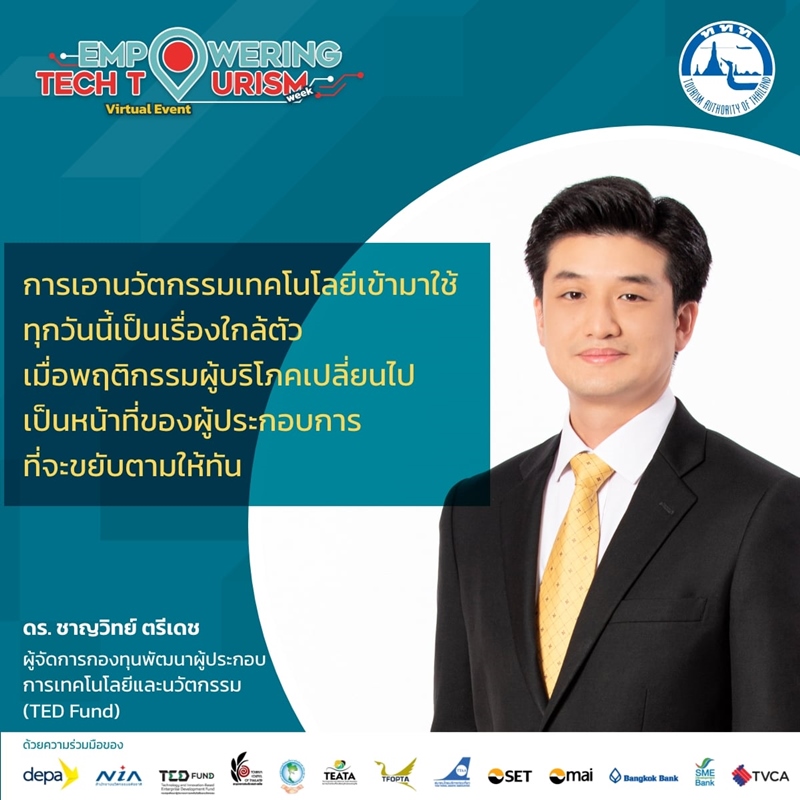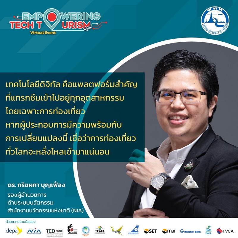 การท่องเที่ยวแห่งประเทศไทย (ททท.) จึงได้เดินหน้าฟื้นฟูอุตสาหกรรมการท่องเที่ยวไทยดำเนิน “โครงการพัฒนาศักยภาพผู้ประกอบการท่องเที่ยวยุคดิจิทัล” พร้อมจัดงาน “Empowering Tech Tourism week Virtual Event” งานอีเว้นน์ออนไลน์เพื่อการจับคู่ธุรกิจระหว่างผู้พัฒนานวัตกรรมและผู้ประกอบการท่องเที่ยว ที่จัดขึ้นระหว่างวันที่ 6 - 15 กันยายน นี้
