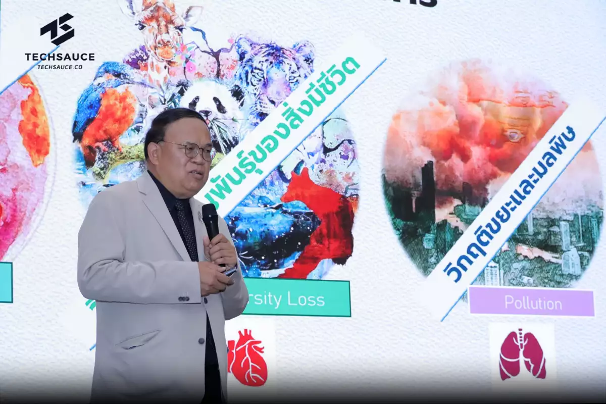ในการบรรยายพิเศษ ดร.วิจารย์ สิมาฉายา ผู้อำนวยการสถาบันสิ่งแวดล้อมไทย ได้ฉายภาพความจริงอันน่ากังวลว่า โลกกำลังเผชิญกับวิกฤตการณ์ซ้อนวิกฤต (Polycrisis) 3 ประการที่เชื่อมโยงกันอย่างแยกไม่ออก ได้แก่