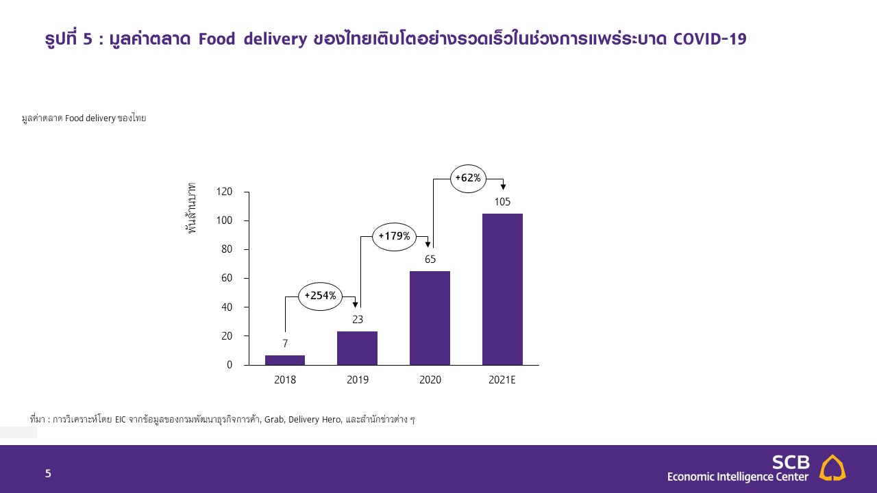 ของ COVID-19 ทั้งนี้มาตรการควบคุมการแพร่ระบาดของโรค ทั้งมาตรการล็อกดาวน์ตลอดจนการทำงานที่บ้าน ประกอบกับแพลตฟอร์ม Food delivery ที่ช่วยอำนวยความสะดวกและมีร้านอาหารให้เลือกหลากหลายมากขึ้น นับเป็นตัวเร่งสำคัญที่ทำให้
