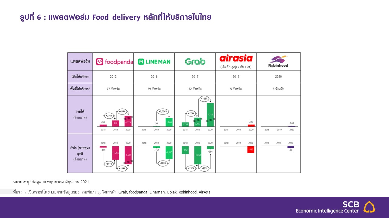 ที่มา : การวิเคราะห์โดย EIC จากข้อมูลของกรมพัฒนาธุรกิจการค้า, Grab, Delivery Hero, และสำนักข่าวต่าง ๆ