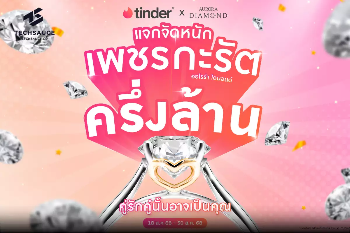 Tinder® แอปพลิเคชันหาคู่ที่ครองตลาดโลก และ Aurora Diamond แบรนด์เครื่องประดับเพชรชั้นนำของไทย ประกาศความร่วมมือครั้งประวัติศาสตร์ เปิดตัวแคมเปญ “แจกจัดหนัก เพชรกะรัตครึ่งล้าน” สร้างแรงสั่นสะเทือนด้วยการเปลี่ยนบทบาทจากแพลตฟอร์มหาคู่สู่การเป็น "คู่แท้" ยุคใหม่ สนับสนุนความรักที่เริ่มต้นจากโลกออนไลน์ให้กลายเป็นจริง