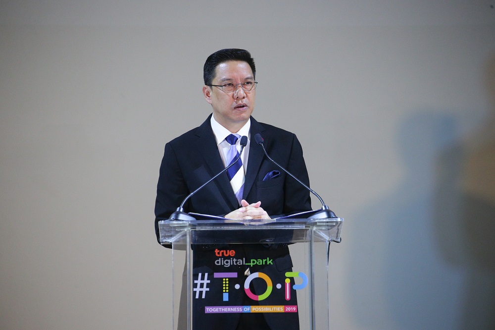 ดร.สมคิด จาตุศรีพิทักษ์ รองนายกรัฐมนตรี และ นายพุทธิพงษ์ ปุณณกันต์ รัฐมนตรีว่าการกระทรวงดิจิทัลเพื่อเศรษฐกิจและสังคม ร่วมงานสัมมนาเทคโนโลยีครั้งใหญ่แห่งปี T.O.P.2019 – Togetherness of Possibilities โดยมีคุณศุภชัย เจียรวนนท์ ประธานคณะผู้บริหารเครือเจริญโภคภัณฑ์ และประธานกรรมการ บมจ.ทรู คอร์ปอเรชั่น ให้การต้อนรับ โดย True Digital Park ศูนย์กลางนวัตกรรมดิจิทัลแห่งแรกในไทยที่ใหญ่ที่สุดในภูมิภาคเอเชียตะวันออกเฉียงใต้ สานพลังความร่วมมือของเหล่าพันธมิตรร่วมเติมเต็มระบบนิเวศสมบูรณ์แบบครบวงจรสำหรับ Startup จัดงานสัมมนาเทคโนโลยีดังกล่าว เพื่อเปิดโอกาสในการแบ่งปันแนวคิด องค์ความรู้ ประสบการณ์ ตลอดจนแนวโน้มของธุรกิจเทค และแลกเปลี่ยนมุมมองจากผู้บริหารและผู้ประกอบการชั้นนำด้านเทคโนโลยีและนวัตกรรมในภูมิภาค ร่วมผลักดันการพัฒนาเศรษฐกิจดิจิทัลของประเทศไทยและภูมิภาคอย่างยั่งยืน โดยมีเหล่า Startup และผู้ที่สนใจในแวดวงเทคโนโลยีดิจิทัลเข้าร่วมงานอย่างคับคั่ง พร้อมเยี่ยมชม Innovation Space แหล่งรวมเทคโนโลยีใหม่ๆ ศูนย์ทดลองนวัตกรรม และการเรียนรู้จากหน่วยงานภาครัฐ บริษัทต่างๆ และองค์กรชั้นนำระดับโลก รวมทั้งนวัตกรรมจากทรู 5G ที่จัดแสดงในพื้นที่ True 5G Arena (5G showcases & Co-working Space) ณ บริเวณชั้น 6 True Digital Park