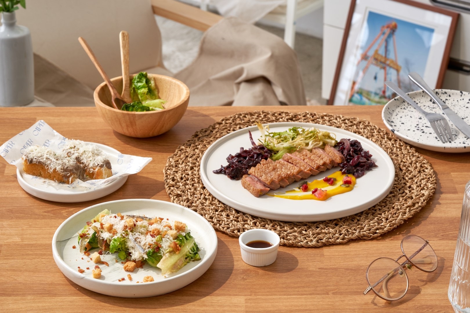 ท็อปด้วย ทรัฟเฟิลชีส พาร์เมซานชีส ที่ถูกจัดมาในเซ็ท ขนมปังบริยอชทรัฟเฟิล ซีซาร์สลัด พร้อมกับอาหารจานหลัก ที่สามารถเลือกสั่งเพิ่มได้ไม่ว่าจะเป็น อกเป็ดรมควัน หรือพอร์กชอป อาจทำให้หลายคนหลงรักไปกับอาหารสไตล์ Comfort Modern American จากเชฟมิชลินสตาร์อย่างเชฟแดน บาร์ก ที่รังสรรค์เมนูอาหารมาให้เหล่านักชิมได้ลิ้มรส กันถึงที่บ้าน แต่ยังคงให้ความรู้สึกเหมือนนั่งอยู่ในร้านสไลต์แกสบี้ (Gatsby) อย่าง Caper คุณเฟย์ธัญจิรา ตระกูลวงษ์ เจ้าของร้าน Caper by Dan Bark และ Cadence Restaurant by Dan Bark เล่าว่า “สำหรับเมนูที่ทางร้านเลือกมา จะเป็น signature ที่ลูกค้าหลายท่าน เมื่อไปถึงร้านเราแล้วมักจะต้องสั่งมาทานซึ่งเราได้รวมไว้ทั้ง snack, appetizer และ main course เพื่อให้ลูกค้าสามารถสั่งเป็นชุดได้เลย” และนอกจากนี้สำหรับใครที่เป็นสาวกอกเป็ดรมควันและ พอร์กชอป ของ Caper ต้องห้ามพลาดเพราะดีลนี้อาจเป็นโอกาสสุดท้ายเนื่องจากทางร้านจะมีการนำเมนูใหม่เข้ามาแทนที่แล้ว