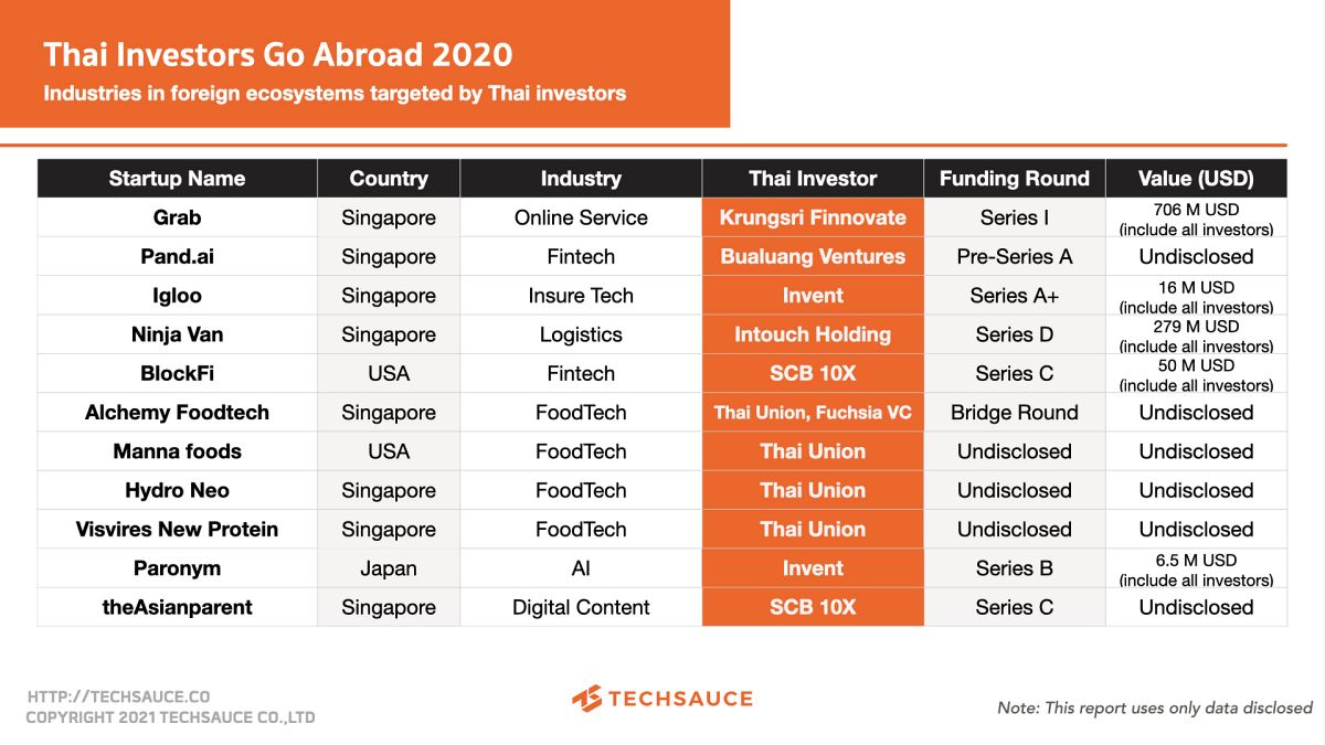 Deal การระดมทุนของ Corporate ที่ใหญ่ที่สุดในปีนี้ที่มีนักลงทุนไทยร่วมด้วยคือ การลงทุนของ MUFG ใน Grab มูลค่า 706 ล้านดอลลาร์สหรัฐฯ ซึ่ง deal นี้นำไปสู่การ Parternship ระดับภูมิภาคระหว่าง Grab กับธนาคารในเครือ MUFG โดยในประเทศไทยคือกลุ่ม Krungsri ถือเป็นหนึ่งในผู้ร่วมลงทุนด้วย ทั้งนี้ Krungsri Finnovate ซึ่งเป็น CVC จะยังได้ร่วมเป็น Partner ในการพัฒนานวัตกรรมทางการเงินโดยในข่าวระบุว่า Grab กับ Krungsri มีแผนจะพัฒนาผลิตภัณฑ์ทางการเงินทั้งสำหรับผู้บริโภคและ Partner หรือผู้ให้บริการบน Platform ด้วย