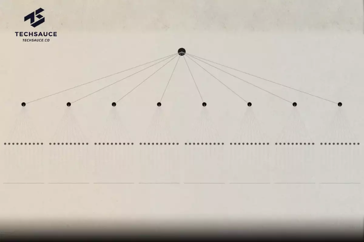 พวกเขาพบความจริงข้อหนึ่งว่า มนุษย์ 1 คน สามารถดูแลและสั่งการคนใต้บังคับบัญชาได้อย่างมีประสิทธิภาพสูงสุดแค่ประมาณ 3-8 คนเท่านั้น ดังนั้น วิธีเดียวที่จะคุมคน 5,000 คนได้ คือการจัดโครงสร้างแบบซ้อนชั้นขึ้นมา