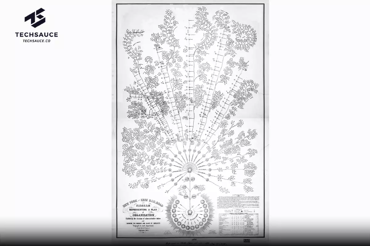 ในปี 1855 Daniel McCallum จึงได้วาด 'แผนผังองค์กร (Organization Chart)' แผ่นแรกของโลก ขึ้นมา เพื่อกำหนดสายบังคับบัญชา เส้นทางการรายงาน และการไหลเวียนของข้อมูลให้ชัดเจนแบบเดียวกับกองทัพโรมัน