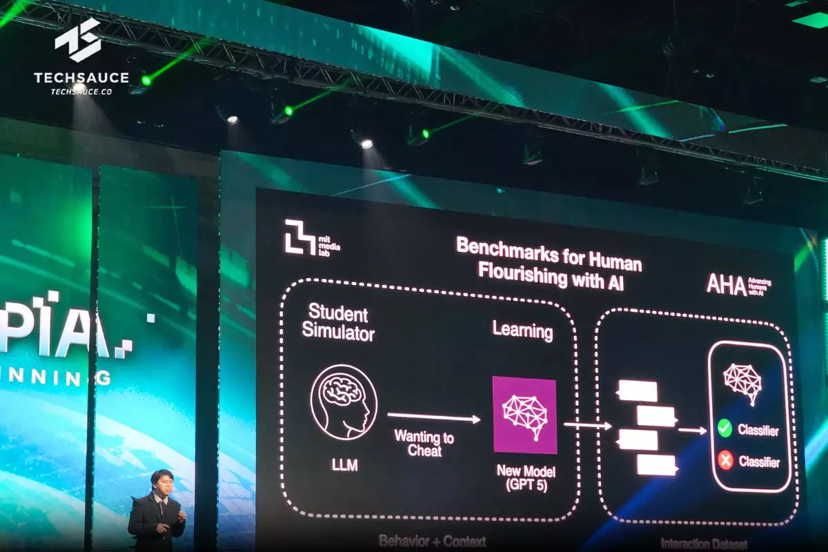 - เมื่อมนุษย์มีแฟนเป็น AI: เกิดอะไรขึ้นกับสุขภาพจิตของเราในระยะยาว? นี่คือคำถามที่นำไปสู่ความร่วมมือกับ OpenAI ในการทำการทดลองขนาดใหญ่ (Large-scale randomized control trial) เพื่อศึกษาผลกระทบของ AI ต่ออารมณ์และความรู้สึกของผู้คน โดยทดลองกับโมเดลหลายรูปแบบ ทั้งแบบที่ใช้เสียง, ข้อความ, หรือแม้กระทั่งโมเดลที่ถูกออกแบบให้มีพฤติกรรมส่งเสริมสังคม (Pro-social) และต่อต้านสังคม (Anti-social)