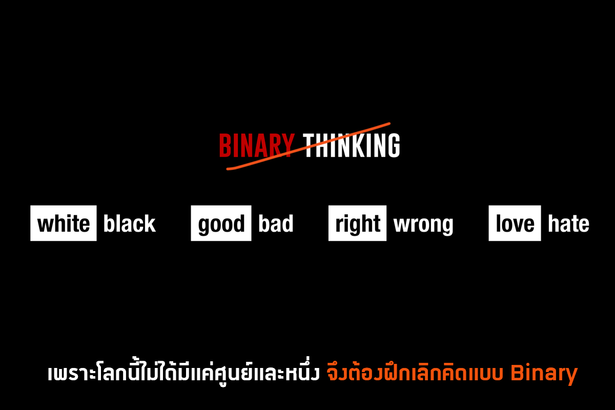 ซึ่งการคิดแบบ Non-binary หรือ Directional ไม่ใช่แค่การไม่ใช่แค่การคิด 2 ด้านเท่านั้น แต่รวมถึงการคิดบวกด้วย แทนที่เราจะคิดแบบ Reactive เราก็คิดแบบ Proactive