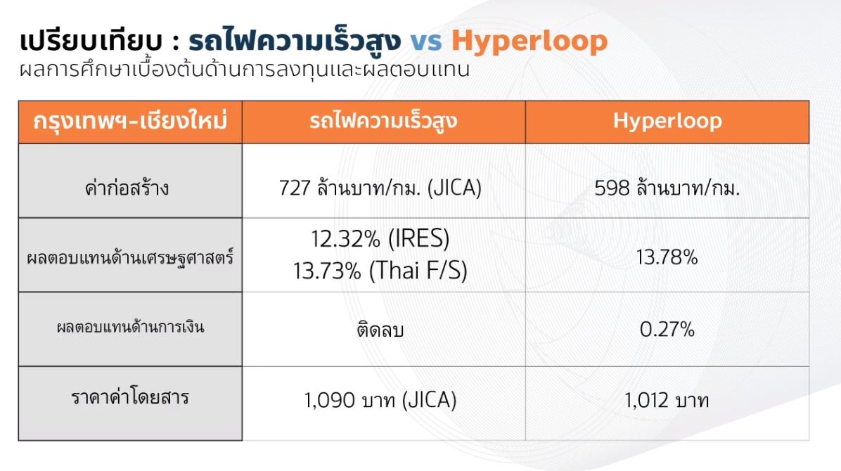 เขาเล่าว่า เขาได้คุยกับร็อบ เฟอร์เบอร์ ผอ.ฝ่ายวิศวกรรมของ Virgin Hyperloop One เกี่ยวกับความเป็นไปได้ในการสร้างรถไฟไฮเปอร์ลูปในไทย