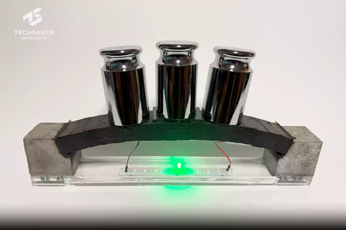 เพื่อสาธิตแนวคิดนี้ ทีมวิจัยได้สร้างโครงสร้างโค้ง (Arch) ขนาดเล็กจาก ec3 และพบว่ามันสามารถรับน้ำหนักตัวเองและน้ำหนักที่กดทับ พร้อมกับจ่ายไฟ 9 โวลต์ให้กับหลอดไฟ LED ได้ในเวลาเดียวกัน