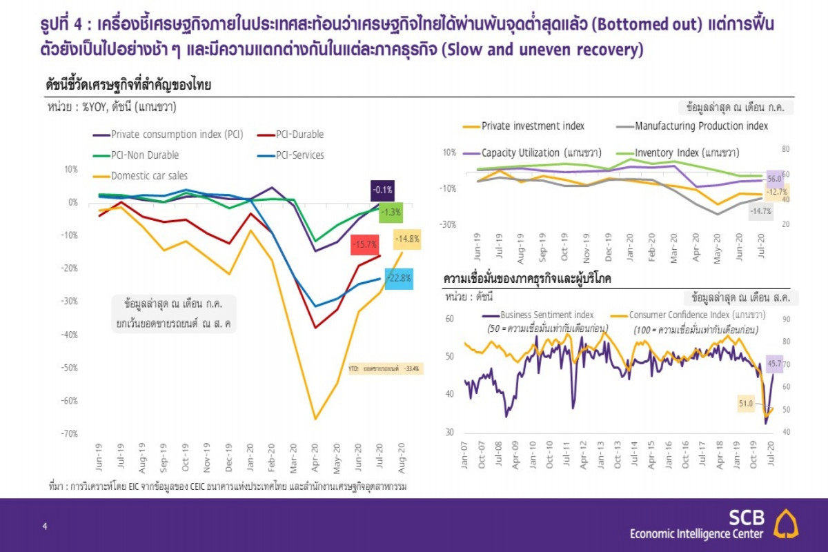 SCB EIC ปรับลดประมาณการ เศรษฐกิจไทย ปี 2563 เป็นหดตัว -7.8% จากเดิมคาด -7.3% โดยการฟื้นตัวของเศรษฐกิจไทยมีแนวโน้มเป็นไปอย่างช้า ๆ ท่ามกลางความเสี่ยงสำคัญหลายด้านโดยเฉพาะความเปราะบ...