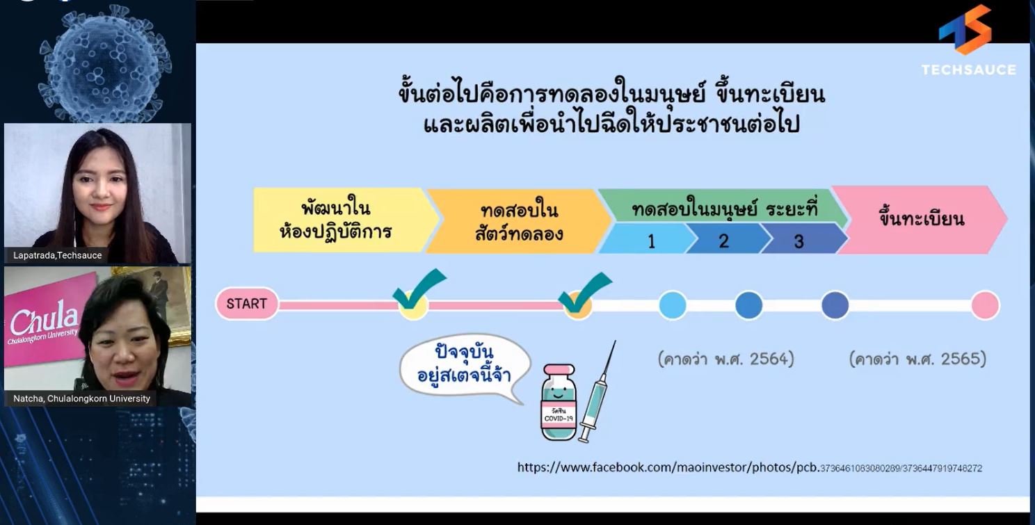 ซึ่งครั้งนี้ Techsauce Live COVID-19 ได้มีโอกาสมาบอกกล่าวโครงการดีๆ เกี่ยวกับวัคซีน COVID-19 ในหัวข้อ วัคซีน ความหวังของคนไทย กับ รศ.ดร.ณัฐชา ทวีแสงสกุลไทย รองอธิการบดี ด้านการวางและกำหนดยุทธศาสตร์ นวัตกรรม และพันธกิจสากล