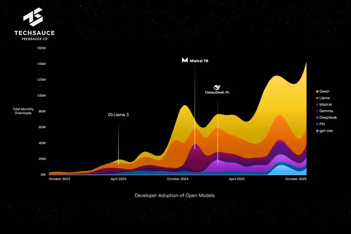 และ Open Source คือ ตัวเร่งปฏิกิริยาให้เกิดการระเบิดของ Demand ปกติแล้วเทคโนโลยีขั้นสูงมักจะผูกขาดอยู่กับบริษัทยักษ์ใหญ่ แต่ในวงการ AI โมเดลระดับโลกจำนวนมากเปิดให้ใช้ฟรี (Open Source)