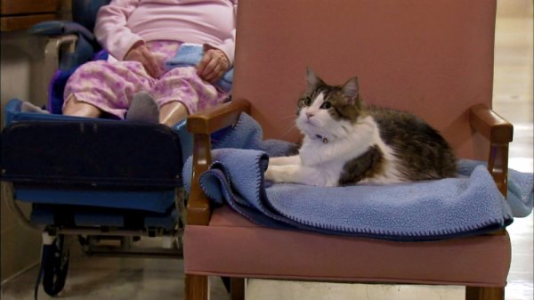 บ้านพักคนชราสเตียร์เฮ้าส์มีแมวอาศัยร่วมกับผู้ป่วย ที่นี่มีแมวชื่อดังที่ชื่อว่า “ออสการ์” มันทำงานหนักที่สุดในบรรดาแมว มันจะคอยอยู่กับผู้ป่วยระยะสุดท้ายจนเขาหรือเธอคนนั้นจากไป ตามคำบอกเล่ามันไม่เคยพลาดหน้าที่นี้ เว้นแต่มีเหตุสุดวิสัย เช่นผู้ป่วยย้ายไปห้องผ่าตัดและเสียชีวิตลง ถ้าเป็นแบบนั้นมันจะคอยอยู่ที่เตียงแทน