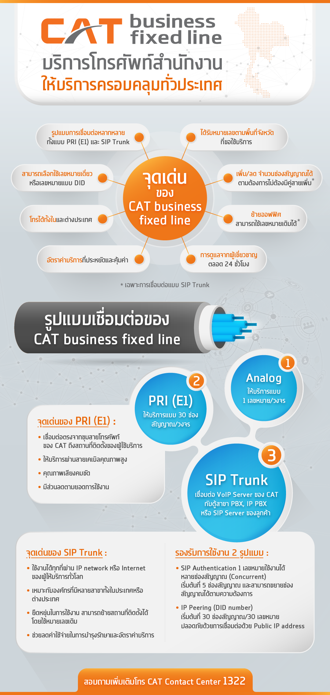 จะเห็นว่าทุกองค์กรไม่ว่าจะเป็นขนาดใหญ่, ขนาดกลางและขนาดเล็ก สามารถใช้บริการ CAT business fixed line ได้หมด โดยผู้ที่สนใจสามารถปรึกษาโซลูชั่นการใช้บริการ ได้ที่ฝ่ายผลิตภัณฑ์โทรศัพท์ โทร 0-2104 3546 หรือสอบถามข้อมูลเพิ่มเติมได้ทาง