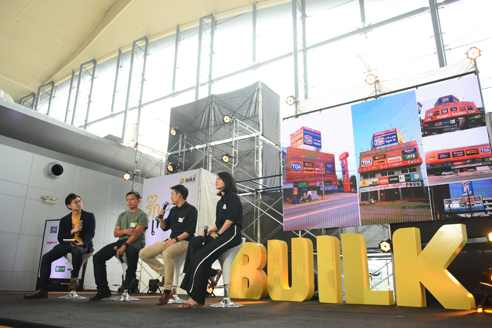 “เราก็คิดว่า Talk มันมีเยอะแล้ว ทำอย่างไรให้งานที่เราอยากจัดไม่เหมือนกับ Talk ทั่วๆ ไป เวลาไปงาน Construction Expo ต่างประเทศ สิ่งที่มีอย่างหนึ่งคือเบียร์ เจอแต่คนลุยๆ เราก็เอามา mix กันแต่ทำให้มันเป็นตัวเรา ด้วยความที่ Builk มีคอนเซปท์แบบไม่อยากแก่ เราอยาก keep energy ความสดความกล้า หรือมีความกบฏนิดๆ ในอุตสาหกรรม เราก็อยากให้เป็นแบบนี้ในงานเรา ฉะนั้นเราจึงจัดงานที่ไม่ได้ใช้ format งานหรือบูทที่เป็นมาตรฐานเหมือนงานทั่วไป รวมถึงปีนี้เราท้าทายตัวเองด้วยการเชิญ Speaker ที่ไกลตัวเรามากที่สุด เมื่อก่อนเราทำได้แค่เชิญแค่คนที่เรารู้จักในประเทศแต่ปีนี้เราเล่นใหญ่ โดยการเชิญ Speaker มาจากต่างประเทศ ทั้งนี้ก็ได้ partner หลายๆ คนมาช่วยกันให้ Developer/ Designer ช่วยหาคนที่เจ๋งๆ และคิดว่าจะเป็นอนาคตของวงการ construction หรือวงการ Tech ของไทยมาเล่าให้ฟัง”