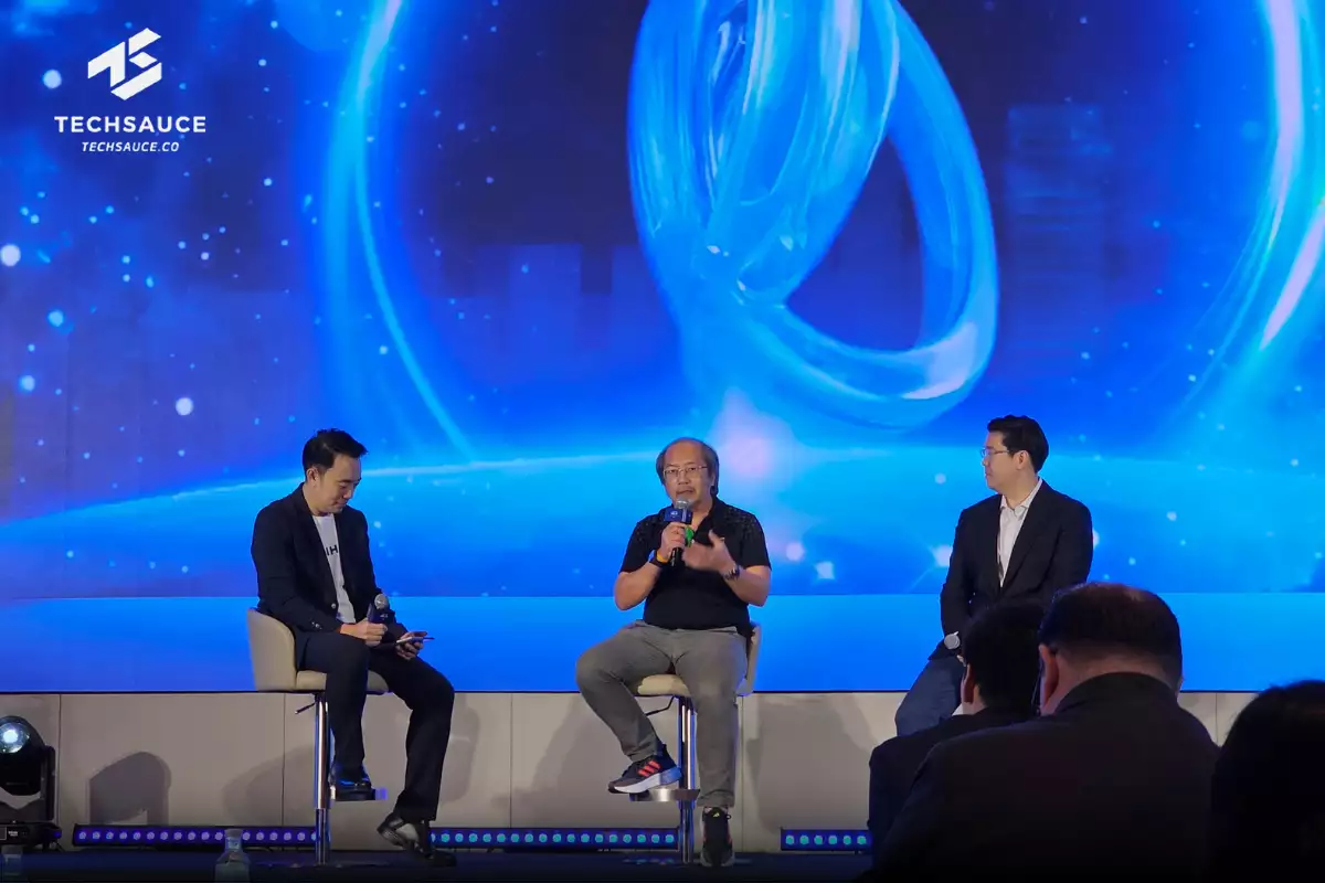 ทั้งสามท่านบนเวทีได้แก่ คุณประกาศิต วัฒนา Chief Digital Infrastructure and Technology Officer จาก UIH ในฐานะผู้ดำเนินรายการ, คุณไอยเรศ เจือสุวรรณ VP of Digital Platform Analytics and Al จากบริษัท บางจาก คอร์ปอเรชั่น จำกัด (มหาชน) และ คุณอนิพัทย์ ศรีรุ่งธรรม ประธานเจ้าหน้าที่สายงานการตลาด จากบริษัท ออโรร่า ดีไซน์ จำกัด (มหาชน)