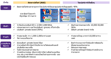 ความแตกต่างของโมเดลค้าปลีกแบบดิสเคาน์สโตร์ของ Aldi กับไฮเปอร์มาร์เก็ตอื่นๆแม้ว่าดิสเคาน์สโตร์ขนาดเล็