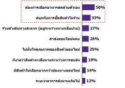 นอกจากนี้ จากผลสำรวจของ Morgan Stanley เกี่ยวกับพฤติกรรมการซื้อสินค้า grocery ผ่านช่องทางออนไลน์ใน 10 ประเทศทั่วโลกพบว่า สาเหตุสำคัญที่ผู้บริโภคไม่ซื้อสินค้า grocery ผ่านช่องทางออนไลน์คือผู้บริโภคส่วนใหญ่ต้องการไปเลือกซื้ออาหารสดด้วยตนเองและบางส่วนชื่นชอบการเดินเลือกซื้อสินค้า grocery จากร้านค้า สำหรับประเทศไทย อีไอซีมองว่า ร้าน grocery ยังไม่น่าจะได้รับผลกระทบจากช่องทางออนไลน์มากนัก