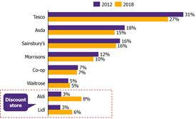 ส่วนแบ่งตลาดของร้าน grocery รูปแบบต่าง ๆ ของอังกฤษ