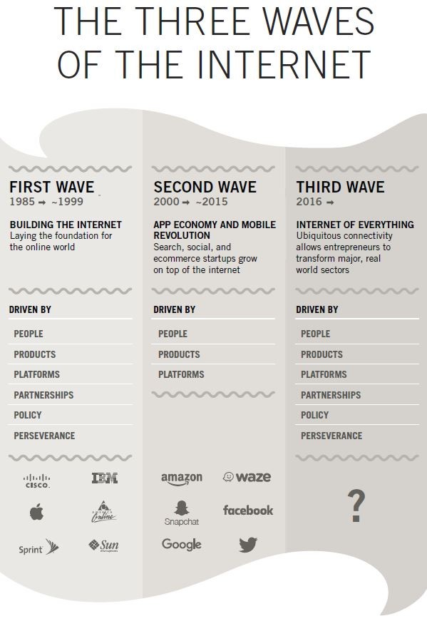 โลกของแอปพลิเคชันมีการเติบโตเร็วมาตั้งแต่ปี 2000 เป็นต้นมา มีบริษัทซอฟแวร์ระดับโลกมากมายที่เกิดในช่วงนี้ และมีผู้เล่นต่างๆ มากราย Steve Case มองว่า ตั้งแต่ปี 2016 ถัดไป เราจะเข้าสู่ยุคของคลื่นลูกที่สาม คือ Internet of Everything เป็นแนวคิดเรื่องเน้นการ Connect ส่วนต่างๆ เข้าหากัน เชื่อมต่อกับผู้คนมากขึ้น และจะมีการทำพาร์ทเนอร์ชิปต่างๆ เพิ่มมากขึ้น