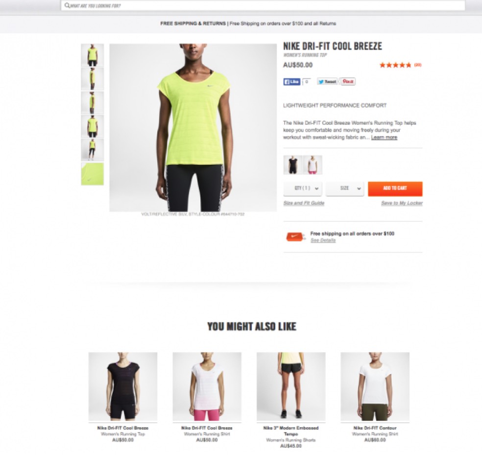 Nike ใช้ extension ที่สามารถทำให้ดูรูปสินค้าหลายๆรูปพร้อมกันได้ พร้อมกับเพิ่มปุ่มที่สามารถทำให้แชร์สินค้าบนโซเชี่ยลมีเดียต่างๆได้ ซึ่งทำให้การใช้งานเว็บไซต์ง่ายขึ้นและช่วยเพิ่มอัตราที่สินค้าจะขายได้ให้กับแบรนด์