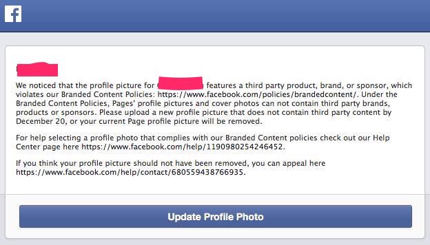 Photo: @joshhuntธันวาคม 2016 : มีคนพบว่า Facebook ส่งคำเตือนมายังแอดมินเพจให้เปลี่ยนรูปโปรไฟล์ที่มี Snapcode ของ Snapchat ติดอยู่ หากไม่เปลี่ยนรูปโปรไฟล์จะถูกลบออกจากระบบ