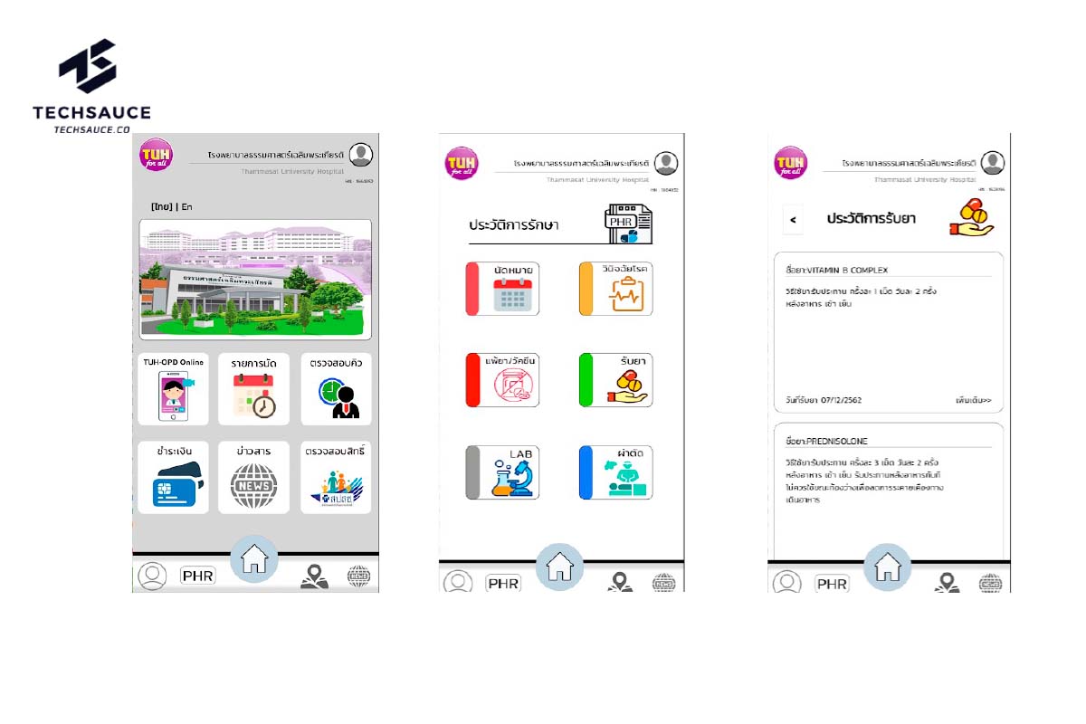 ตัวอย่างแอปพลิเคชัน TUH For All โรงพยาบาลธรรมศาสตร์เฉลิมพระเกียรติ