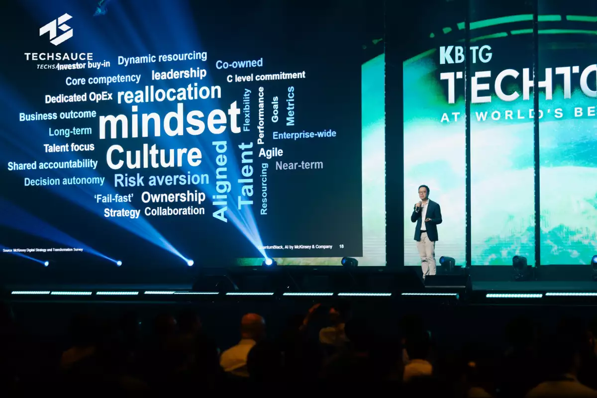 Kevin Wang กล่าวถึงนวัตกรรม AI ที่เร่งตัวขึ้นและยุคของเทคโนโลยี 'Agent' ที่กำลังจะมาถึง ซึ่งคาดว่าจะเพิ่มผลิตภาพได้ 15-20 เท่า โดย AI จะสามารถเข้าใจบริบท ทำงานร่วมกัน เรียนรู้ และให้เหตุผลได้ เขาชี้ให้เห็นว่าแม้ 88% ขององค์กรจะใช้ AI แต่มีเพียงส่วนน้อยเท่านั้นที่ประสบความสำเร็จอย่างมีนัยสำคัญหรือดึงศักยภาพสูงสุดออกมาได้ เนื่องจากโครงการที่กระจัดกระจาย, ทีมที่ทำงานแยกส่วน, ปัญหาผู้นำและวัฒนธรรม, โครงสร้างพื้นฐานไม่เพียงพอ, ช่องว่างด้านทักษะ, และความกังวลด้านความเสี่ยงและจริยธรรม McKinsey แนะนำแนวทางการเปลี่ยนแปลง AI แบบจัดลำดับความสำคัญตามโดเมน โดยเน้นการกำหนดกระบวนการทางธุรกิจใหม่ เขายังกล่าวถึงการแทนที่งานในบางภาคส่วน แต่ก็มองว่าเป็นโอกาสให้มนุษย์มุ่งเน้นงานที่มีมูลค่าสูงขึ้น สุดท้าย เขาย้ำถึงความจำเป็นที่มนุษยชาติต้องเตรียมพร้อมสำหรับ AGI ผ่านการกำกับดูแลและธรรมาภิบาล