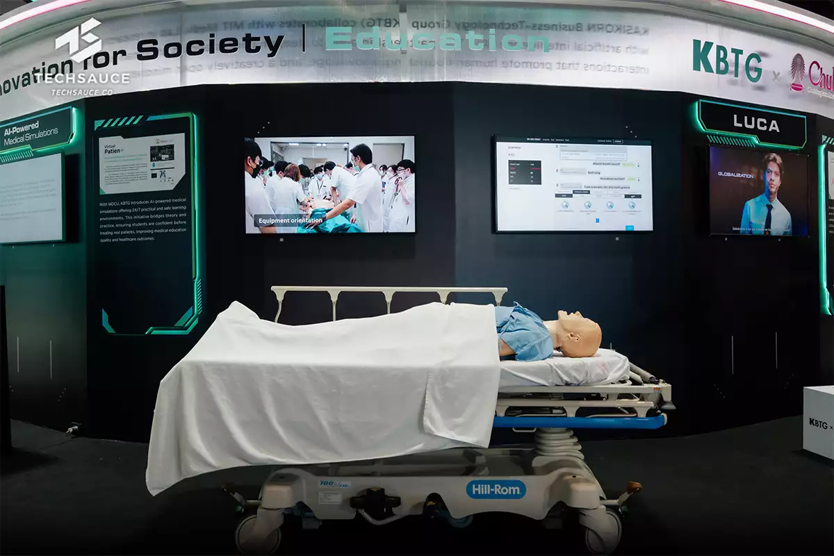 และอีกจุดที่โดดเด่นในบูธ KBTG Labs คือ นวัตกรรมที่เกิดจากความร่วมมือระหว่าง KBTG และจุฬาลงกรณ์มหาวิทยาลัย ได้แก่ AI LUCA นวัตกรรมสำหรับการเรียนการสอน เพื่อสนับสนุนการทำงานด้านวิชาการ วิชาชีพ สังคม และ Virtual Patient ต้นแบบจำลองเสมือนจริงสำหรับการเรียนรู้ให้แก่นักศึกษาแพทย์