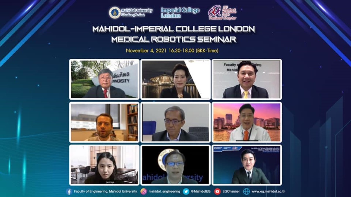 บทบาทของเทคโนโลยีหุ่นยนต์ได้เข้ามามีส่วนพัฒนาความก้าวหน้าด้านสุขภาพและการแพทย์อย่างมากในปัจจุบันและอนาคต มหาวิทยาลัยมหิดล โดย คณะวิศวกรรมศาสตร์ ร่วมกับ อิมพีเรียล คอลเลจ ลอนดอน และสมาคม IEEE Robotics Automation Society Thailand Chapter ถอดบทเรียนและแนวโน้มของหุ่นยนต์การแพทย์ จัดสัมมนาหุ่นยนต์การแพทย์ Reinventing University : Mahidol Medical Robotics Program เพื่อพัฒนาความเป็นเลิศด้านหุ่นยนต์ทางการแพทย์ให้สอดคล้องกับทิศทางการผลิตกำลังคนสมรรถนะสูงเฉพาะทางตามความต้องการของประเทศ และเป็นไปตามนโยบายกระทรวง อ.ว. ภายใต้โครงการพลิกโฉมระบบการอุดมศึกษา รองรับการลงทุนในอุตสาหกรรมยุทธศาสตร์ของไทย