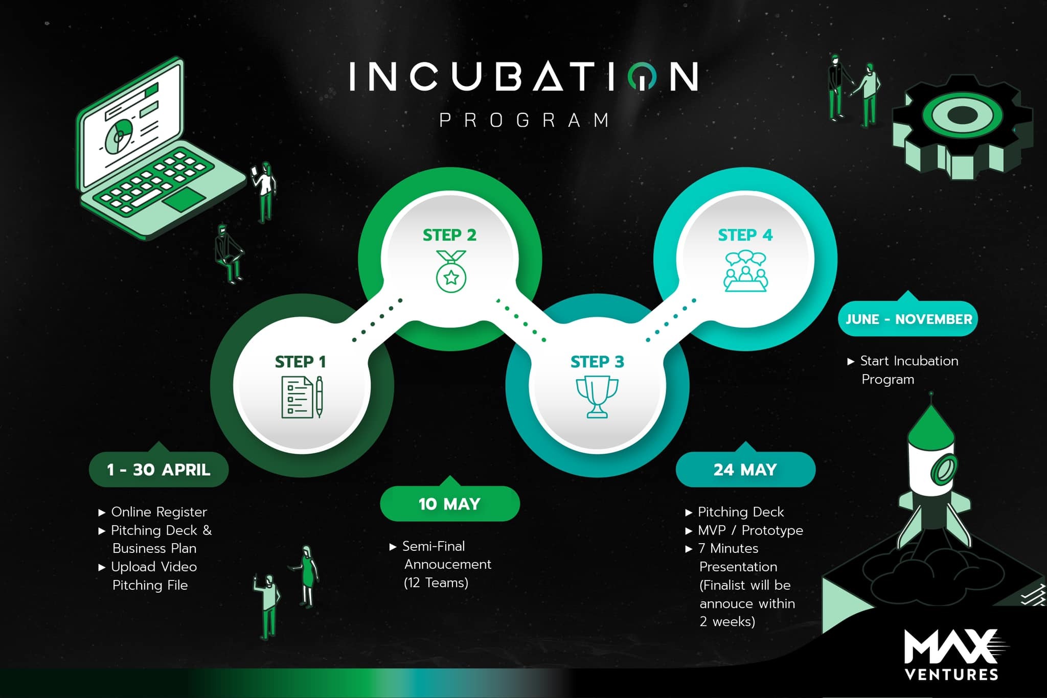 เมื่อได้ 5 ทีมสุดท้ายแล้ว ก็จะได้เข้ากระบวนการพัฒนา Startup ให้เติบโตร่วมกับ MAX Ventures พร้อมรับทุนสนับสนุนต่อยอดไอเดียและการเรียนรู้จาก MAX Ventures และ Business Unit ต่าง ๆ เพื่อให้ธุรกิจสามารถต่อยอดไปสู่การลงทุนและเป็นหุ้นส่วนร่วมกับ MAX Ventures เพื่อส่งมอบ Solution ของ Startup ให้ไปถึงมือผู้บริโภคจริงย้ำว่าภายใน 30 เมษายนนี้เท่านั้น สนใจสมัครได้ที่เว็บไซต์ https://bit.ly/MAXVentures