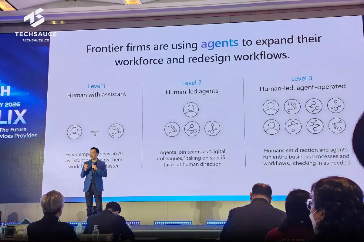 ไมโครซอฟท์มองว่าปี 2026 ไม่ใช่แค่ปีที่พูดถึงปัญญาประดิษฐ์อีกต่อไป แต่คือปีที่ต้องเอามาใช้งานจริงในบริษัท และคำที่ไมโครซอฟท์ใช้นิยามองค์กรที่กล้าก้าวสู่เส้นทางนี้คือ "องค์กรแนวหน้า" องค์กรที่พร้อมรับความเสี่ยงจากการนำเทคโนโลยีล้ำสมัยมาใช้ก่อนใคร
