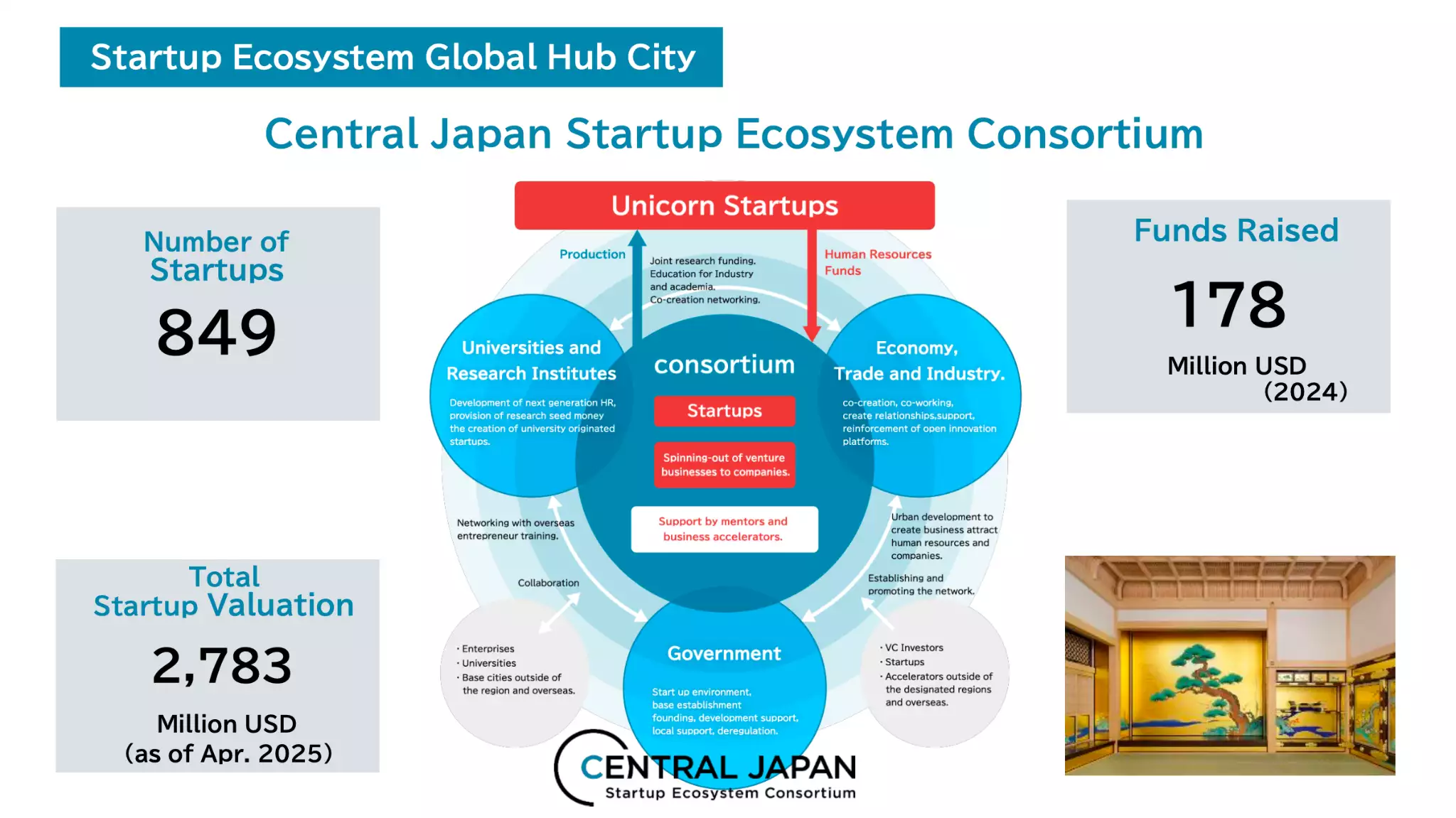 - การดึงดูด CVC (Corporate Venture Capital): เนื่องจากภูมิภาคนี้เต็มไปด้วยบริษัทที่มีเงินสด (Cash-rich manufacturing giants) รัฐบาลจึงสร้างเครือข่าย Chubu CVC Network เพื่อกระตุ้นให้บริษัทใหญ่เหล่านี้ตั้งกองทุน CVC เพื่อลงทุนในสตาร์ทอัพ โดยปัจจุบันมีสมาชิกกว่า 242 บริษัท